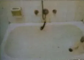 Él la golpea brutalmente con una barra de metal. La deja inconsciente. Luego, la arrastra hasta el baño.